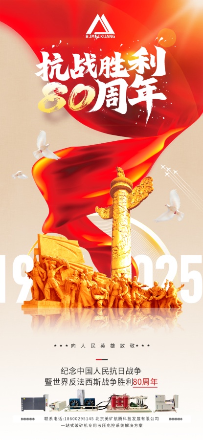 八十年前,先輩浴血奮戰(zhàn),換得山河無恙;八十年后,吾輩賡續(xù)精神,篤行實(shí)干報(bào)國(guó)。在紀(jì)念中國(guó)人民抗日戰(zhàn)爭(zhēng)暨世界反法西斯戰(zhàn)爭(zhēng)勝利 80 周年之際,美礦航騰以初心敬歷史,以行動(dòng)踐使命。深耕礦機(jī)智能液壓系統(tǒng)制造領(lǐng)域,我們集結(jié)軟件、液壓、機(jī)械、電氣工程師核心團(tuán)隊(duì),自主研發(fā)破碎機(jī)、制砂機(jī)等礦機(jī)液壓潤(rùn)滑控制系統(tǒng),量身定制礦山智能解決方案,從圓錐破碎機(jī)、旋回破碎機(jī)、鄂式破碎機(jī)、反擊式破碎機(jī)、制砂機(jī)、振動(dòng)設(shè)備、移動(dòng)破碎站的液壓潤(rùn)滑控制系統(tǒng)的開發(fā)應(yīng)用,以及供應(yīng)適用于國(guó)際品牌美卓/山特維克等系列破碎篩分設(shè)備的備品備件,美礦航騰以硬核技術(shù)服務(wù)海內(nèi)外客戶,深受好評(píng)。銘記歷史不是停駐過往,而是以奮斗奔赴未來。美礦航騰將始終秉持科技創(chuàng)新理念,以更優(yōu)質(zhì)的礦機(jī)液壓產(chǎn)品、更專業(yè)的服務(wù),在實(shí)業(yè)興邦路上堅(jiān)定前行,為礦山行業(yè)發(fā)展、國(guó)家建設(shè)注入力量!